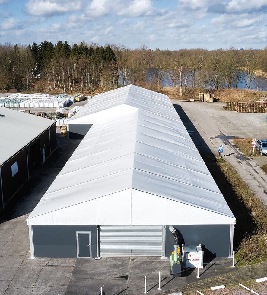 Vous avez besoin d’espace supplémentaire pour votre entreprise, que ce soit temporairement ou à long terme ? En fonction de ces facteurs et d’autres encore, vous pouvez choisir de louer ou d’acheter nos halls de tente. La location est possible à partir de 3 mois et jusqu’à 15 ans ! Cette flexibilité permet à pratiquement tous les entrepreneurs de profiter de nos halls de tente !